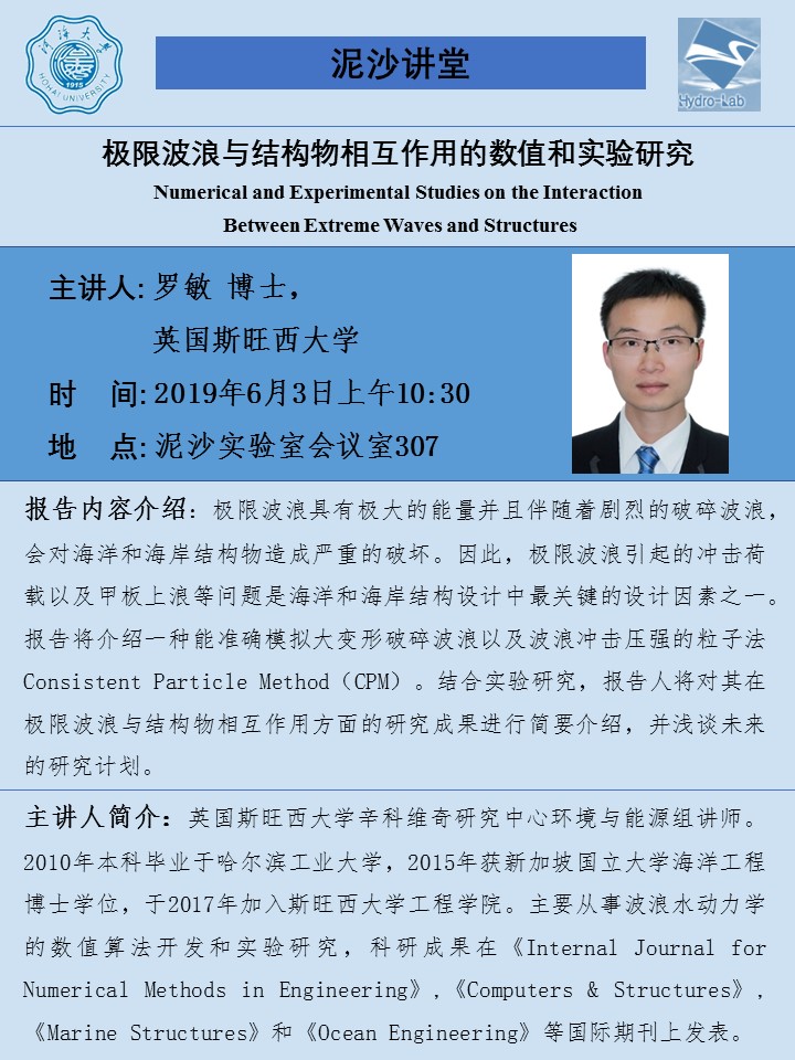学术讲座(极限波浪与结构物相互作用的数值和实验研究)