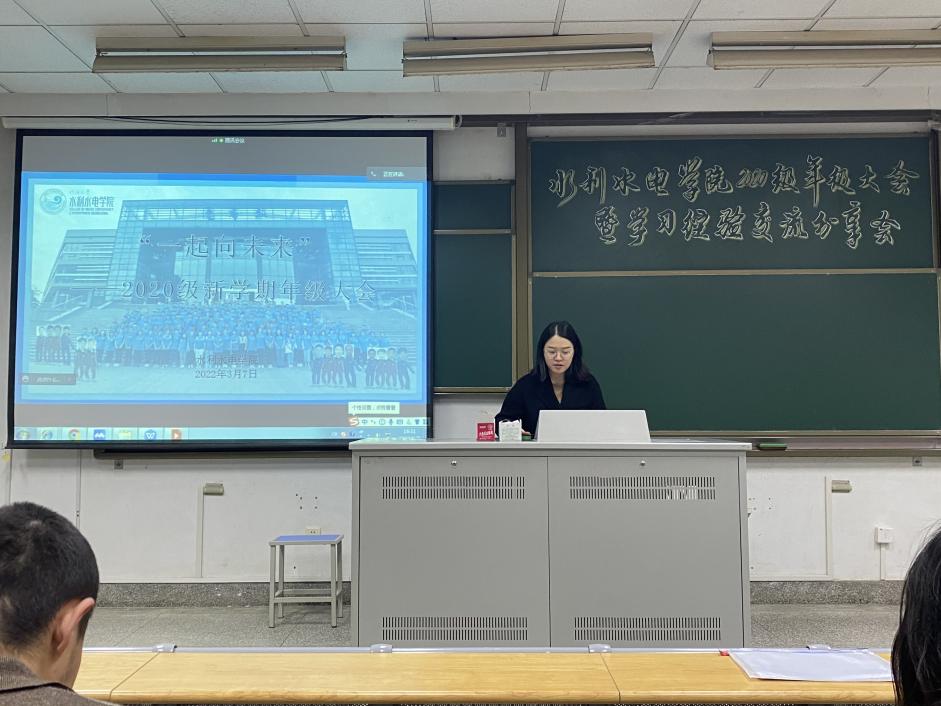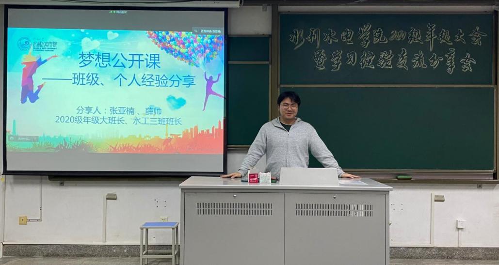 根据上学期学风建设情况,2020级水工三班班长薛帅同学和年级班长张亚楠同学进行了班级和个人经验分享。薛帅同学分享了班级上学期学风建设情况,通过举办线上答疑、宿舍学习、班级讲堂等学风建设活动,营造班级良好学习氛围,促使班级成绩稳步提升。张亚楠同学对年级整体学风建设情况进行总结,结合上学期活动开展效果和意见反馈,不断完善活动形式和内容,多元化开展学习帮扶活动,提高年级同学参与度。