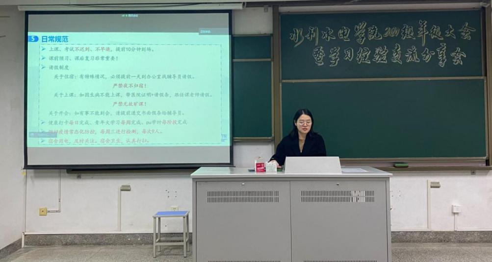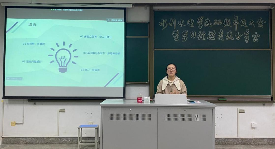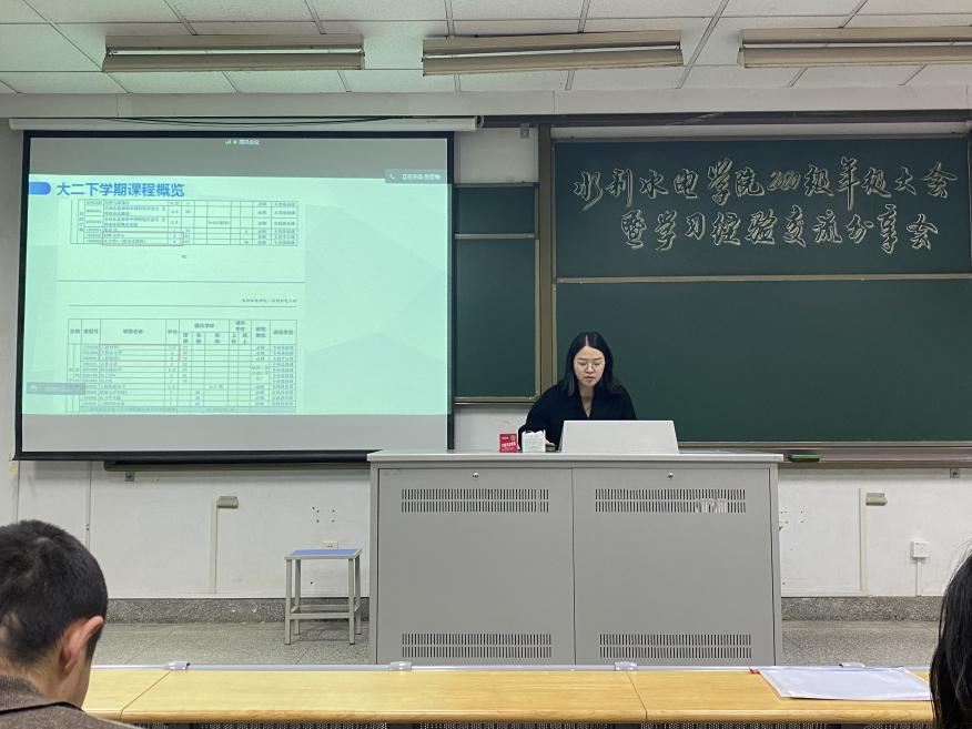 会上,邀请优秀学长姐进行了学习经验分享。2019级水工专业姚磊同学针对大二下学期课程学习情况进行总体分析,并就各个科目考试的具体特点分享自己的学习经验,鼓励同学们多探索、多尝试,注重学习的质量,体验学科的魅力。谷冰岚同学针对学科竞赛方面提供相应建议,鼓励同学们多参加、多准备,有信心并且有恒心去参加竞赛。