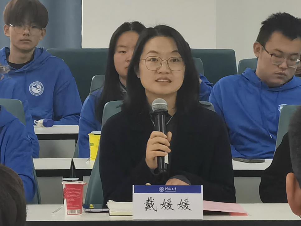 院党委副书记戴媛媛对扬州大学水利科学与工程学院水工2403班同学们的到来表示热烈欢迎。她指出,河海大学与扬州大学都是由近代实业家张謇创办,扬州大学“坚苦自立”校训与河海大学“艰苦朴素”校训十分相近,培养了一大批水利水电建设的骨干力量,为我国水利水电建设和管理做出了杰出贡献。希望今后两校两院可以多开展班团共建活动,优势互补,资源共享,强强联合,互利互惠,立德树人共携手,育人润心同发力。
